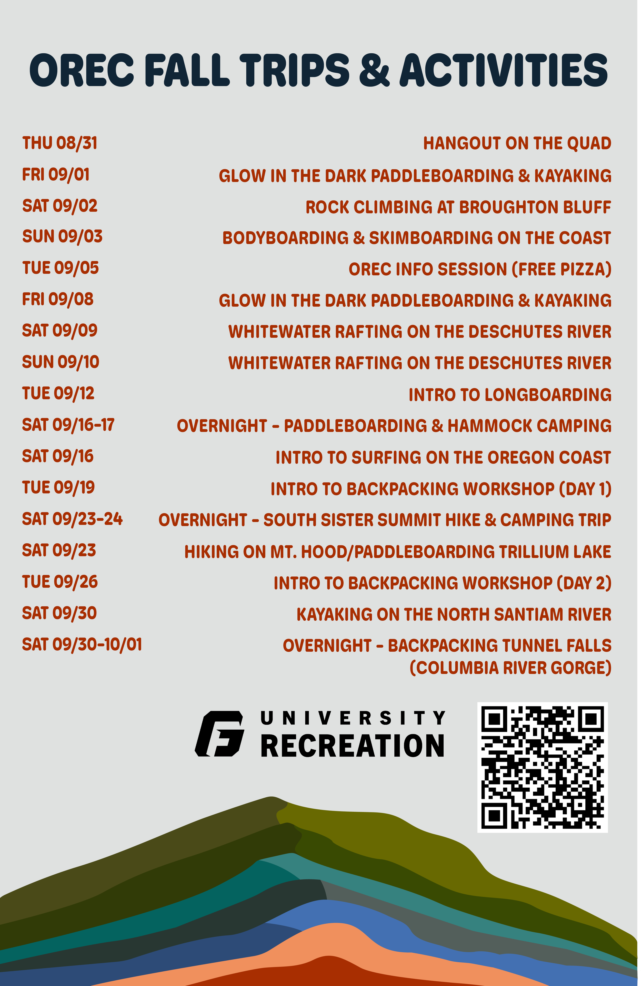 Posters, print ready designs, social media, all sorts of marketing! All of these are original pieces of marketing for the University Recreations Department. The question for each remains the same… how can I help the student body and their college experience the best I can?